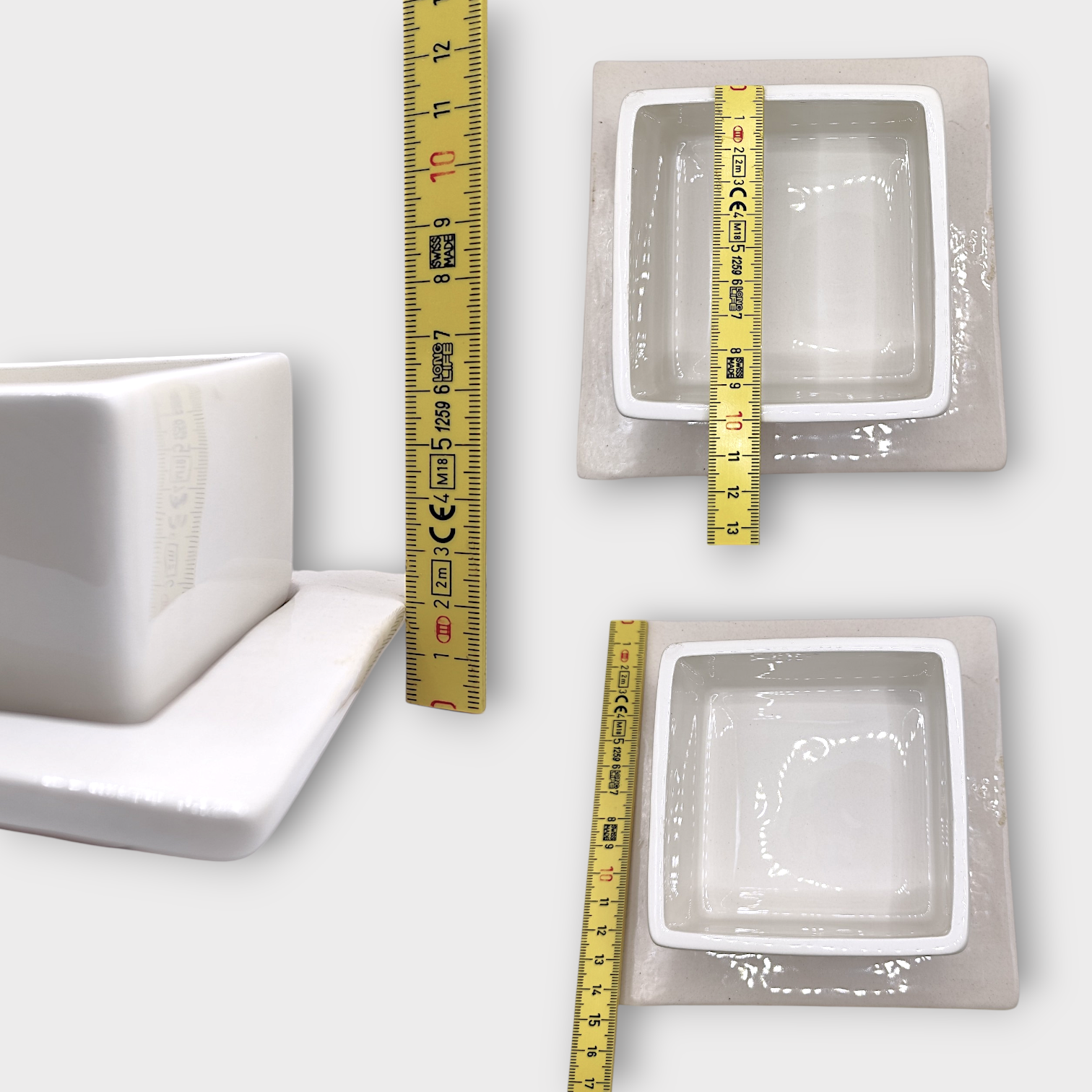 White square pot in porcelain with accompanying saucer. Marked Cult Design, dated 2004. Designed by Marita Lord. Suitable for smaller plants.