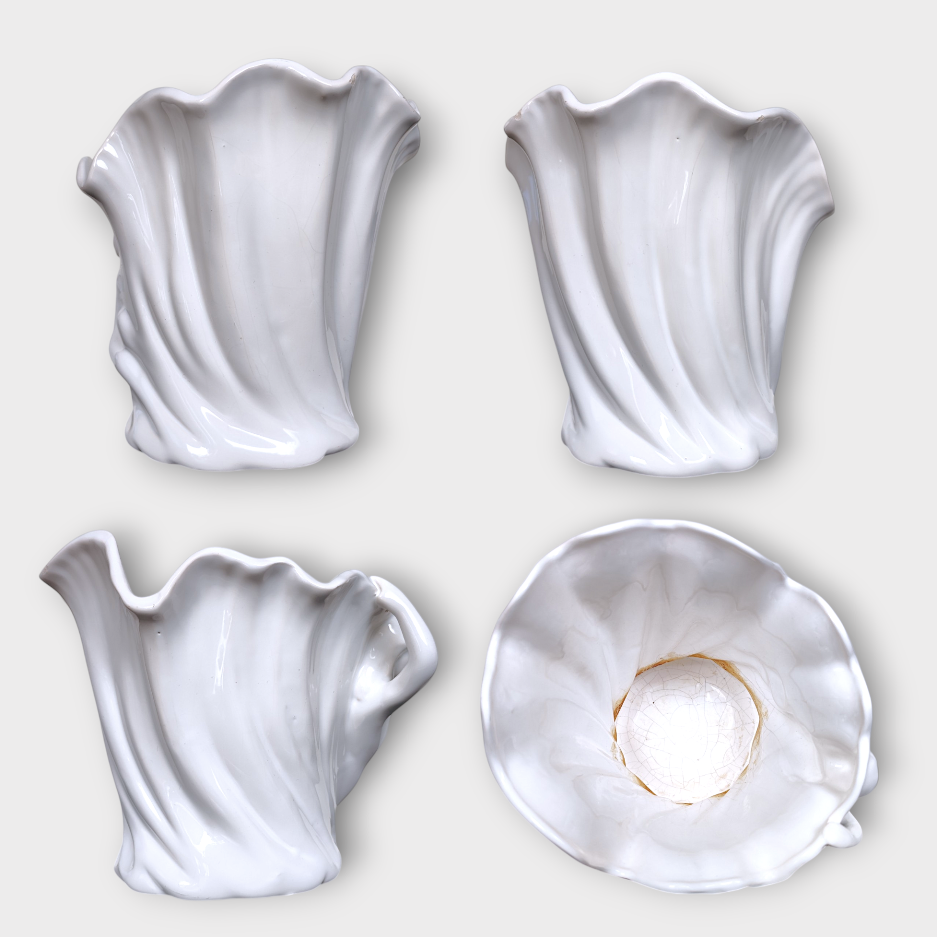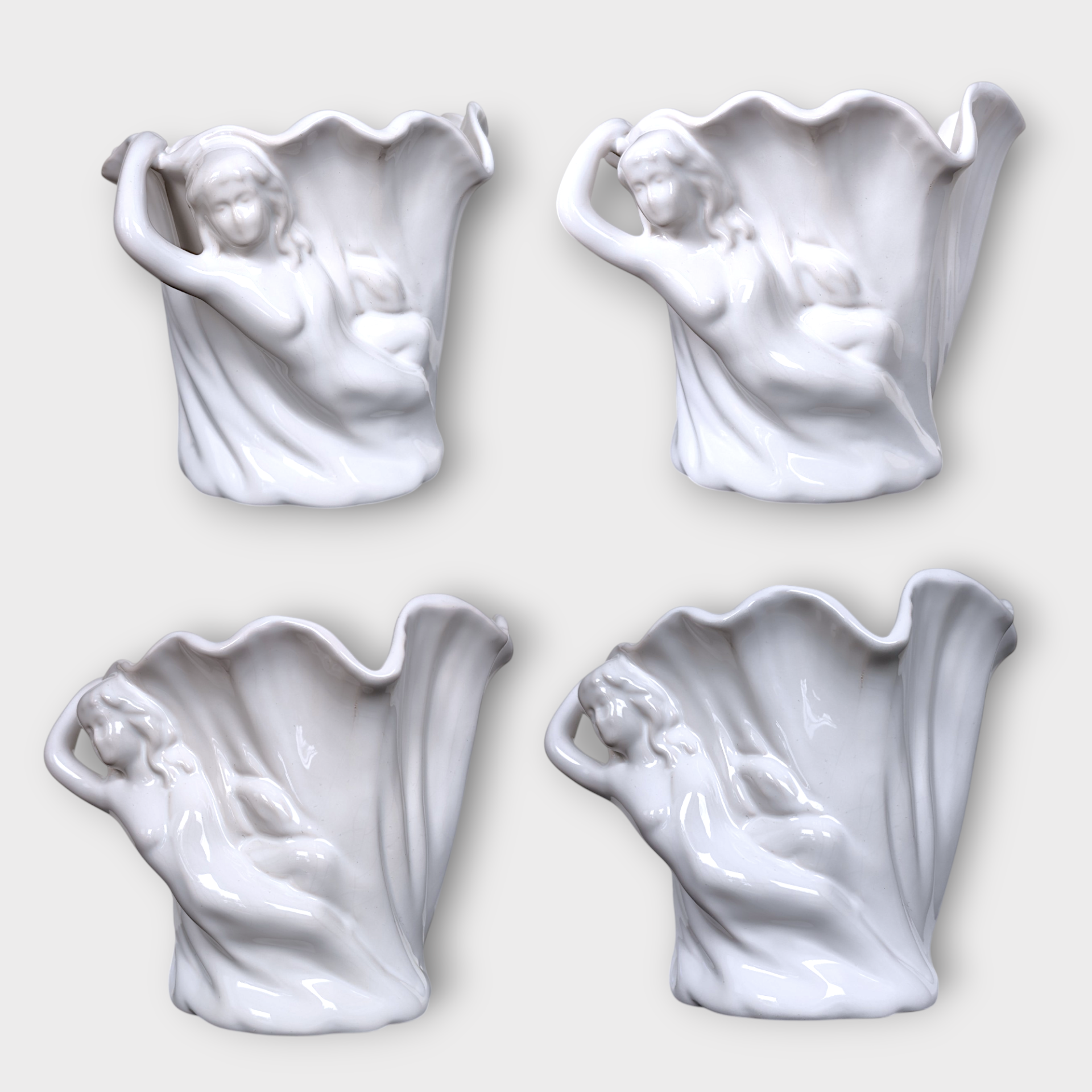 A vintage pot or vase in glazed ceramic. Made in Hungary in the 70s-80s. It has a wavy edge at the top and a relief of a female figure on the side.