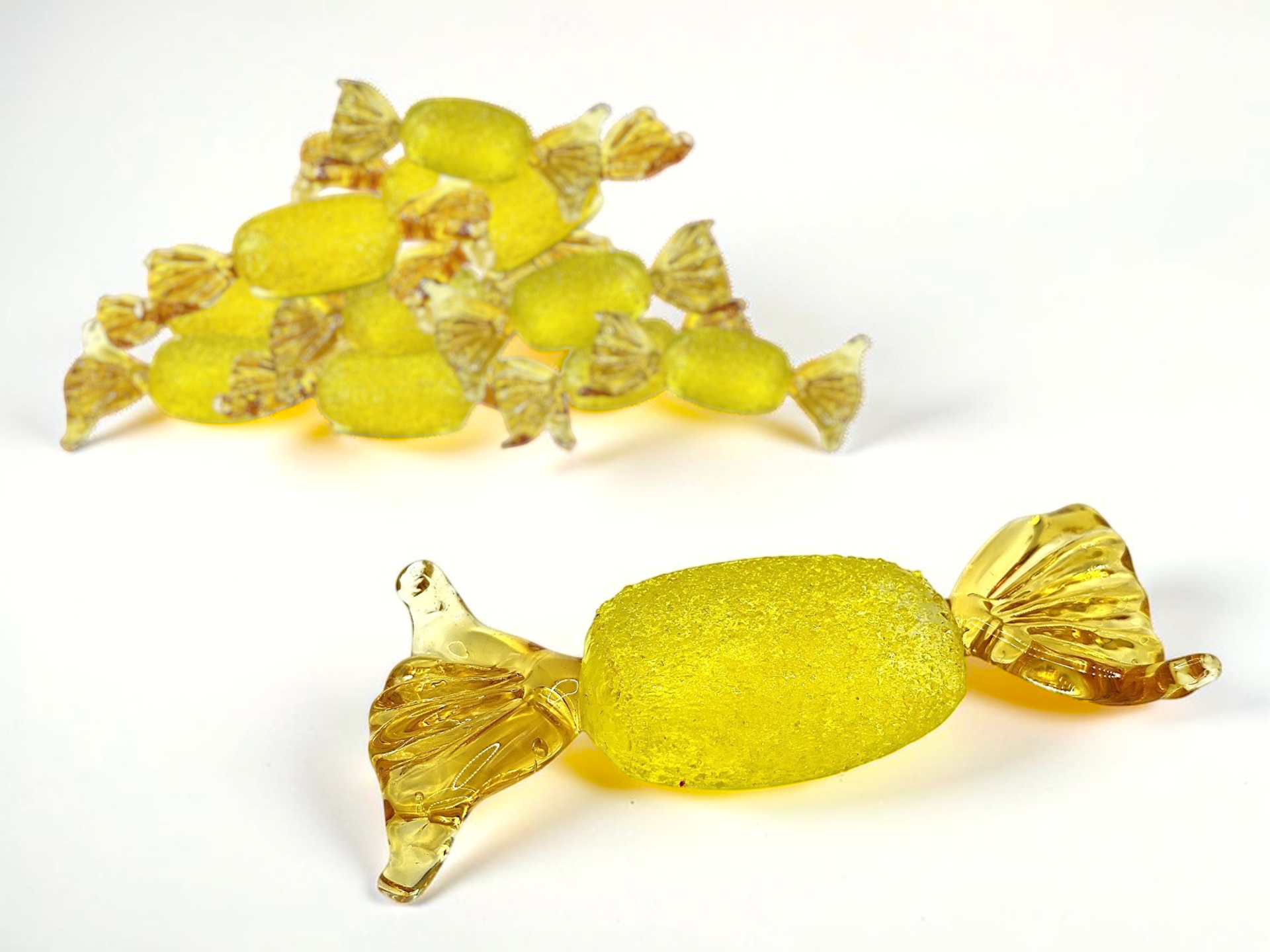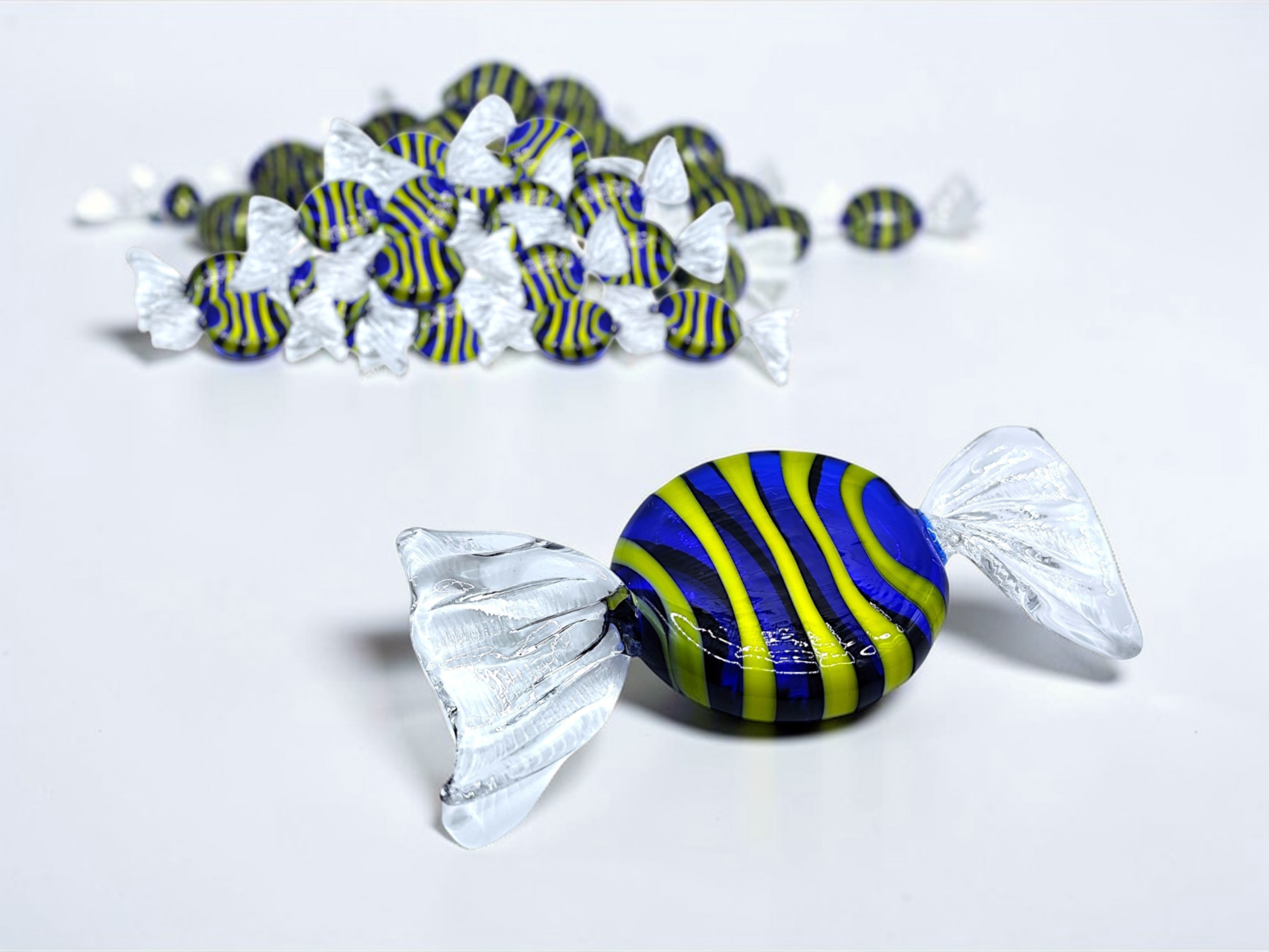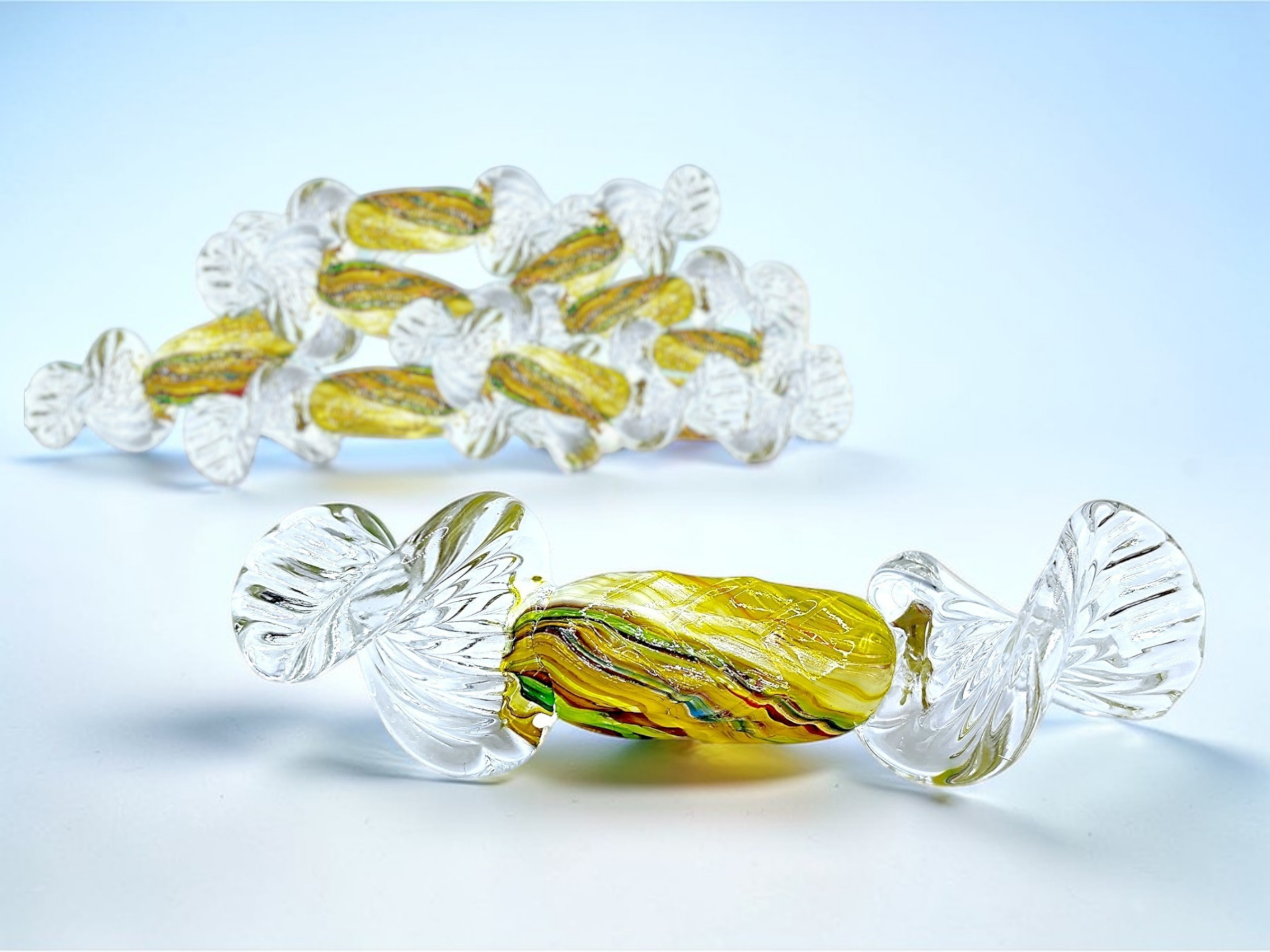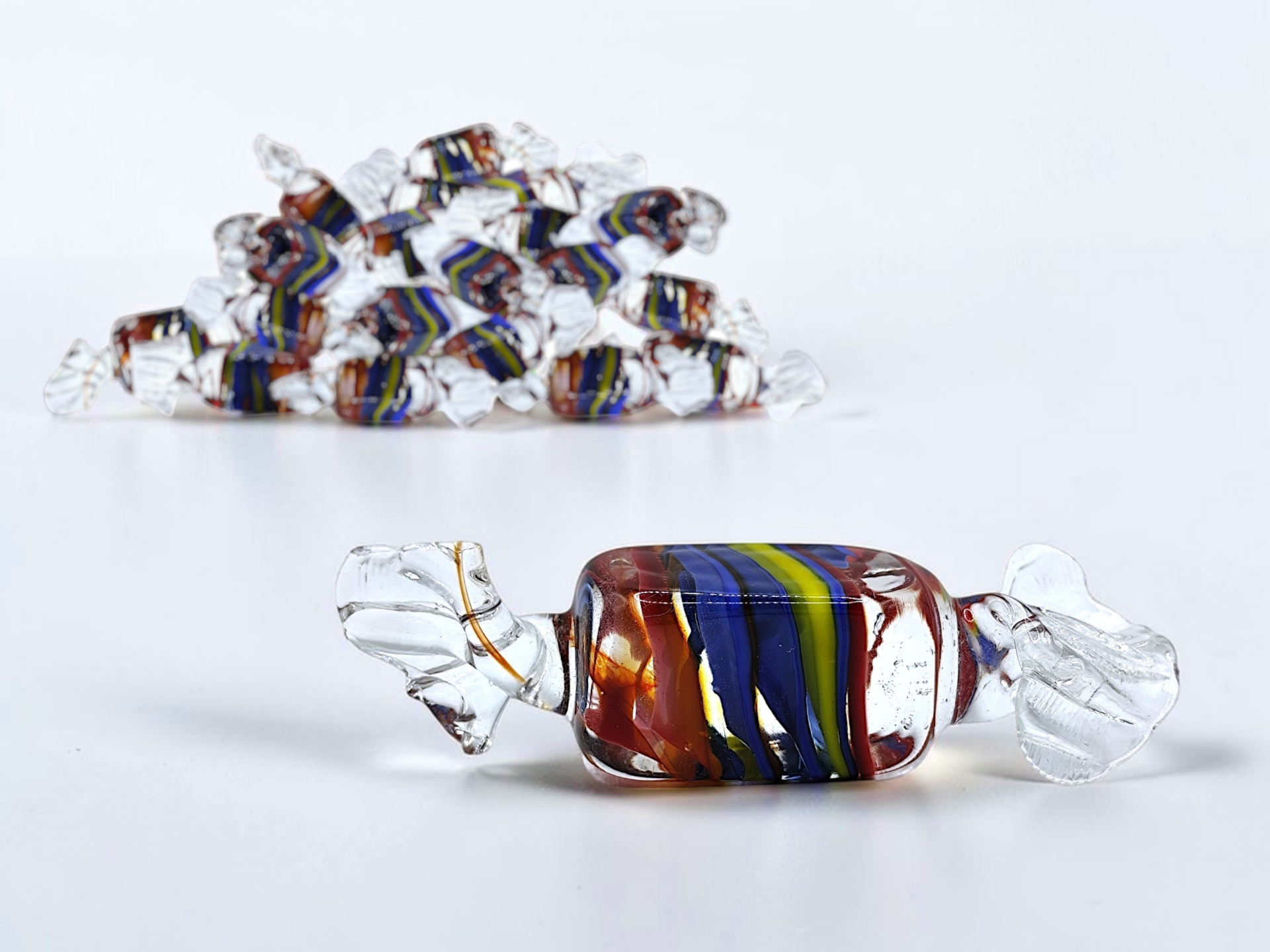 Murano glass sculpture shaped like a candys, often called "candy art glass".