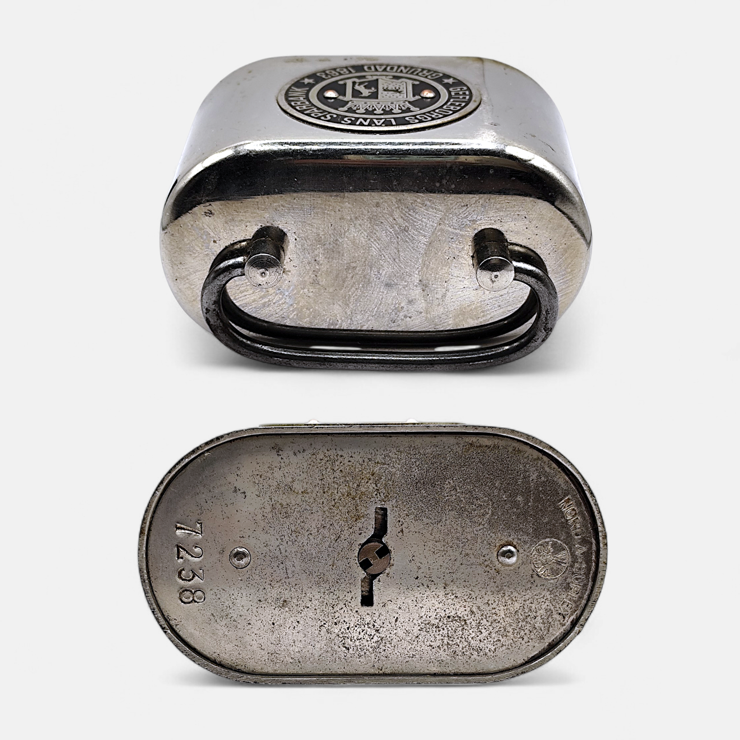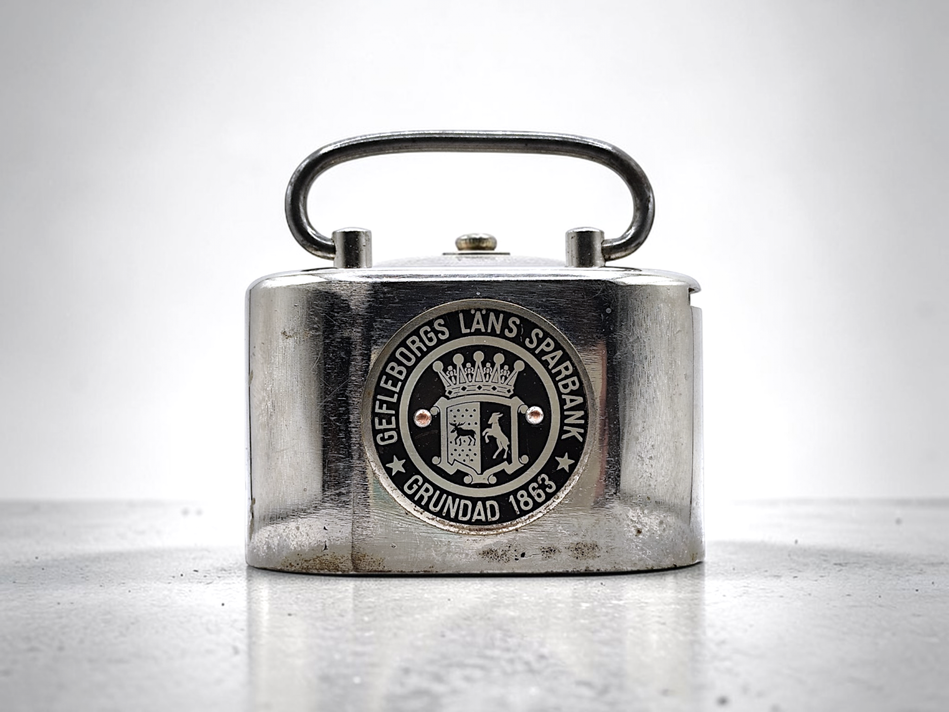 A vintage money box from Jönköpings stads/ Sparbank. Made of metal.