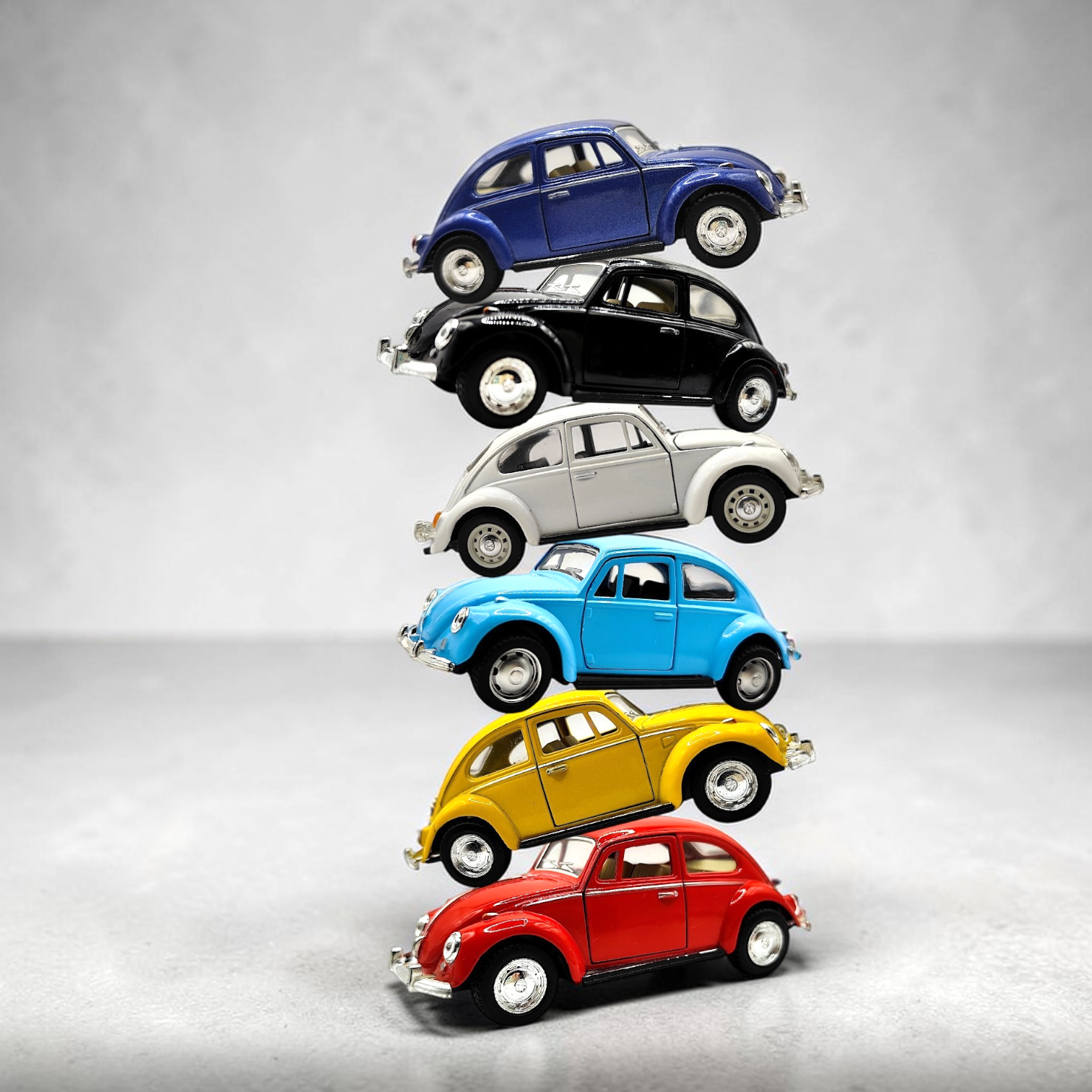 Volkswagen Beetle model cars in different colors. They are detailed replicas of the classic car. An extraordinary car model that will delight every car enthusiast and collector. A unique product, made with meticulous attention to detail. Its solid metal construction guarantees durability and long-lasting fun.