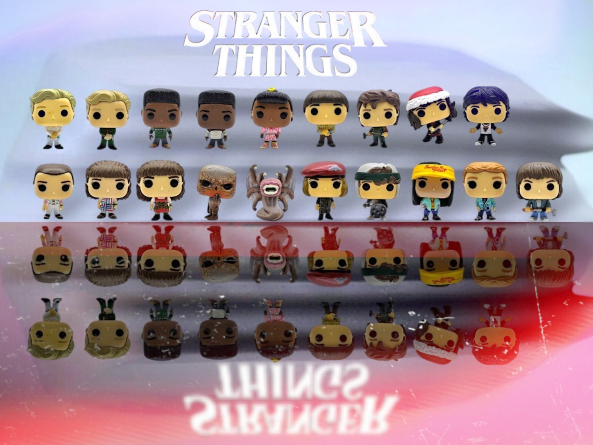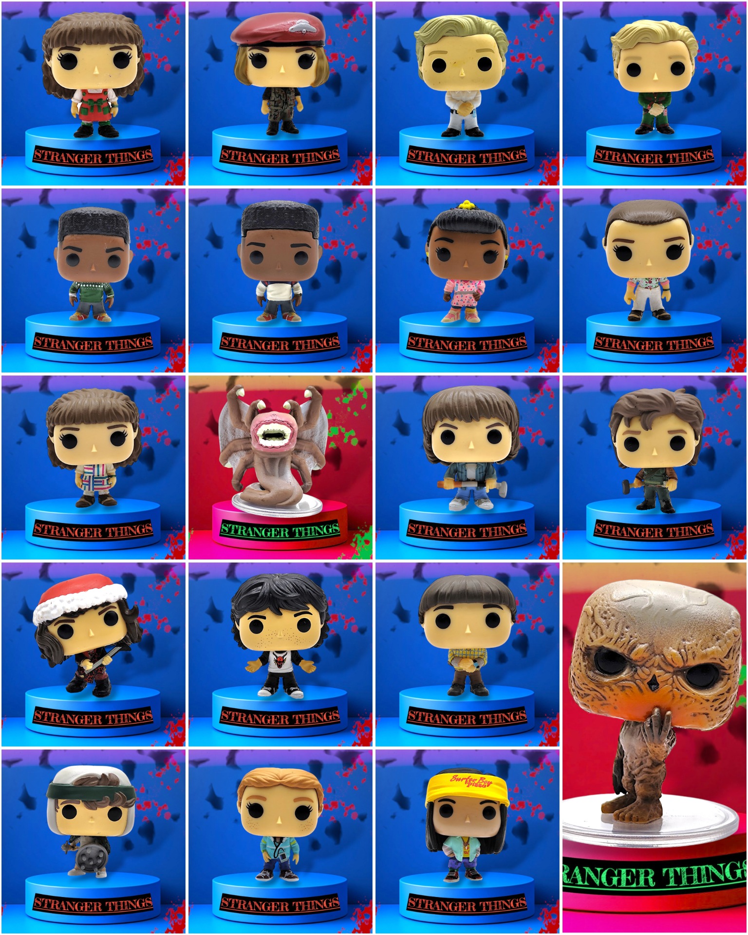 Funko Pop figures from Stranger Things. The figures are detailed and based on the characters from the popular Netflix series. They are part of a collector's series and are suitable for fans of Stranger Things and Funko Pop! collectors.