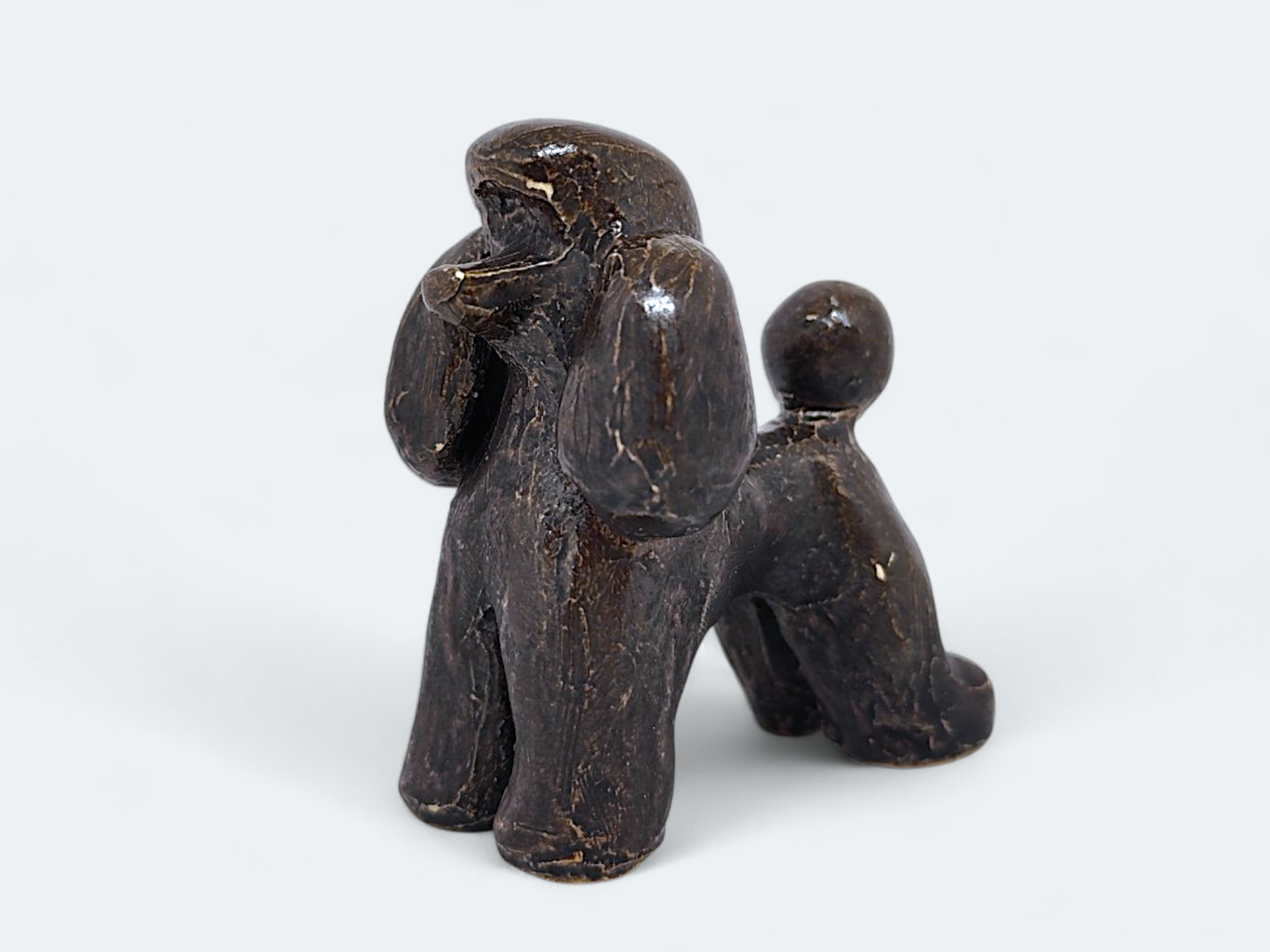 An older ceramic brown poodle. Probably made by ERIK REIMHULT. Signed at the bottom.