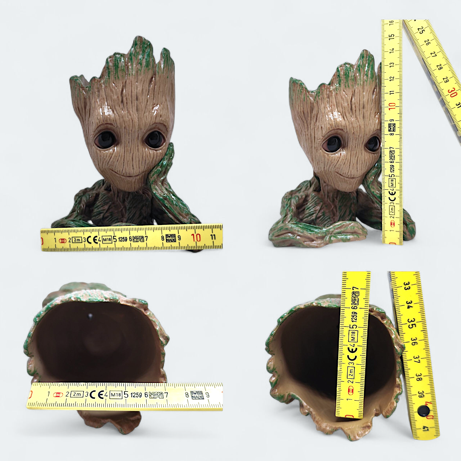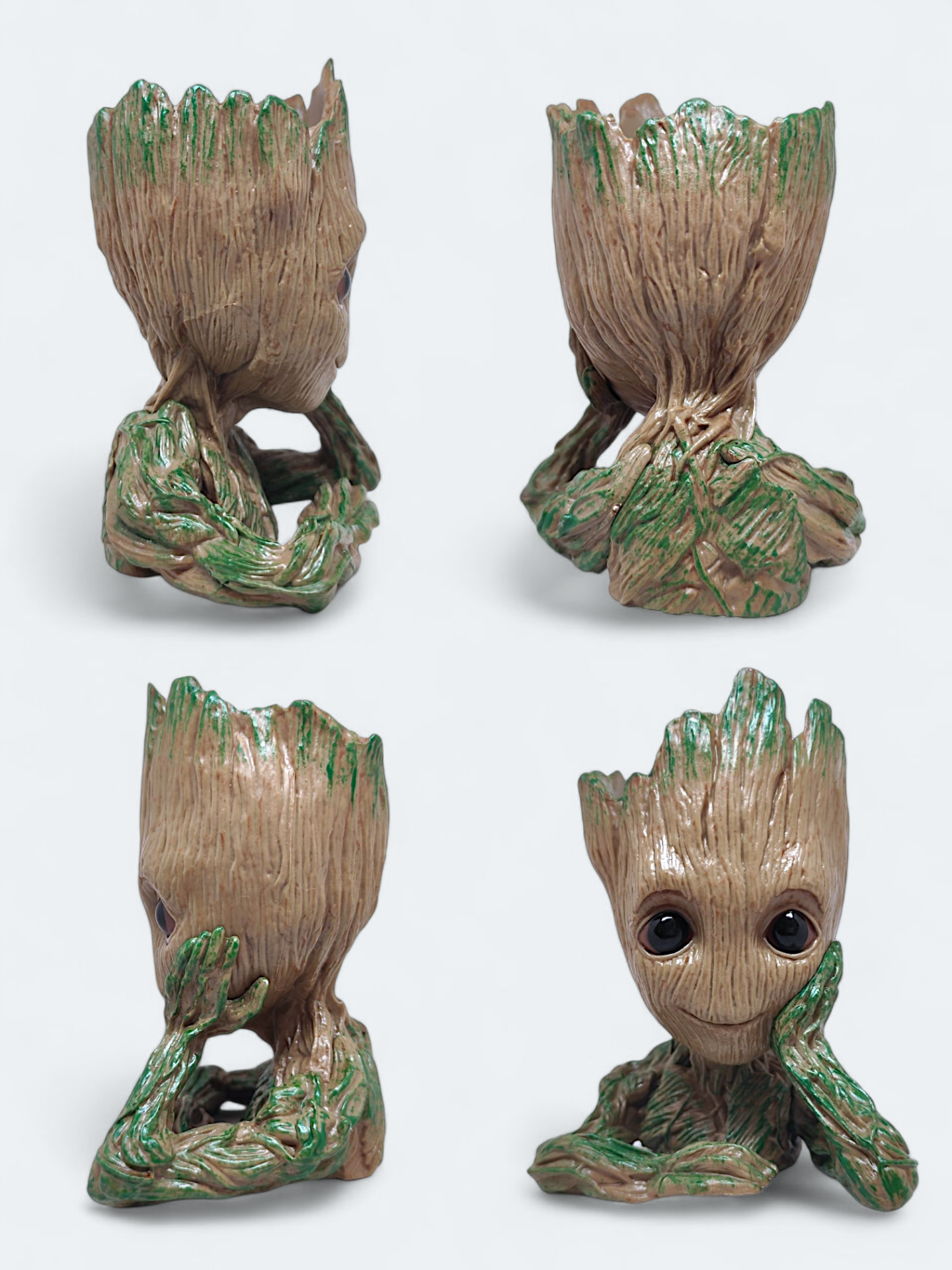 A flower pot depicting a Groot figure. It is a stylish and collectible accessory for the home, garden or desk.
