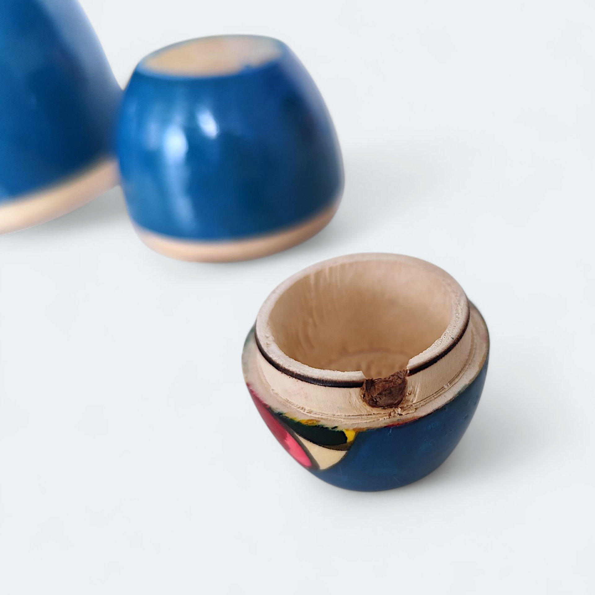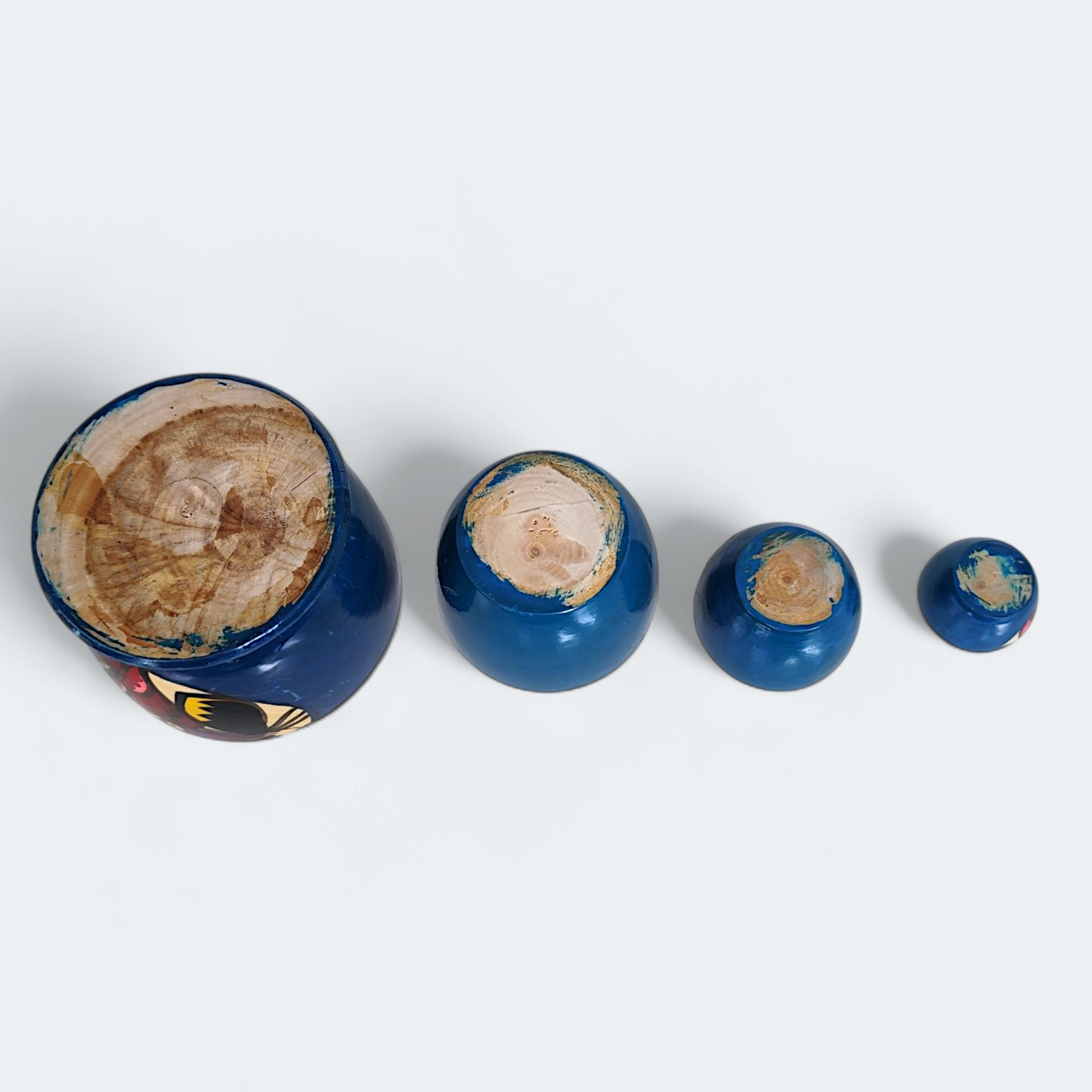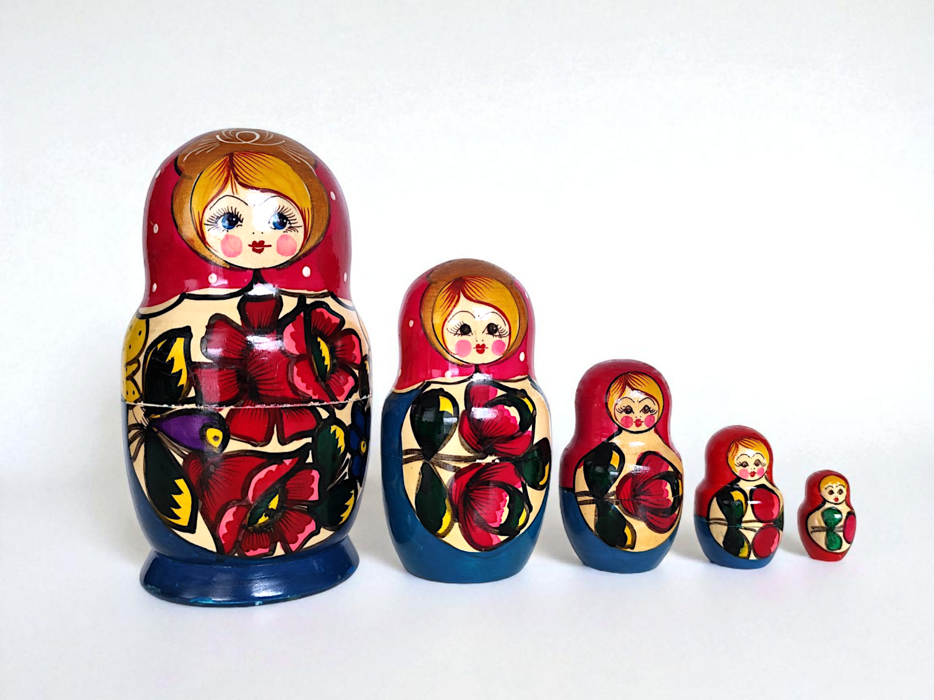 Stackable handmade wooden Russian doll consisting of a total of 5 dolls that stack inside each other. Also known as matryoshka/babushka.