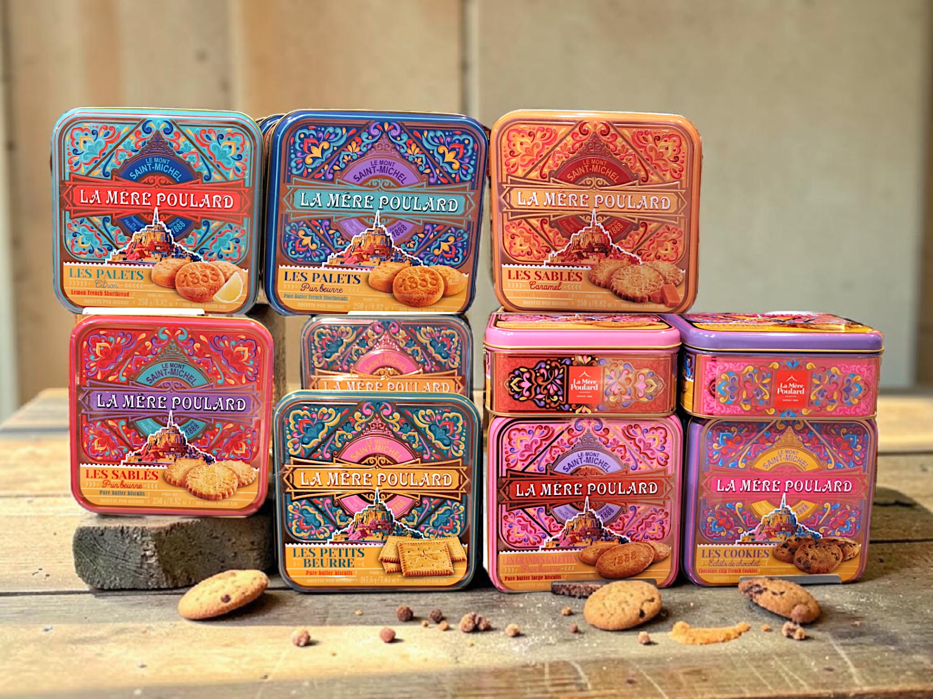 I love these colorful tin boxes for cookies. I found them at the airport in Paris.